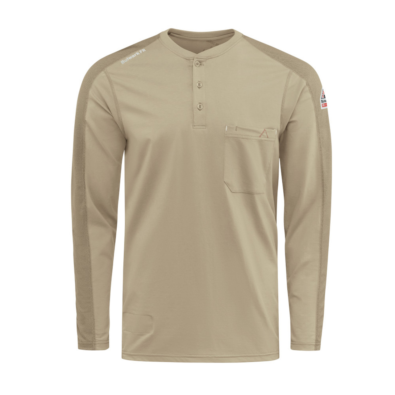 Bulwark Flex Knit Henley DOE Logo Khaki STL2KH