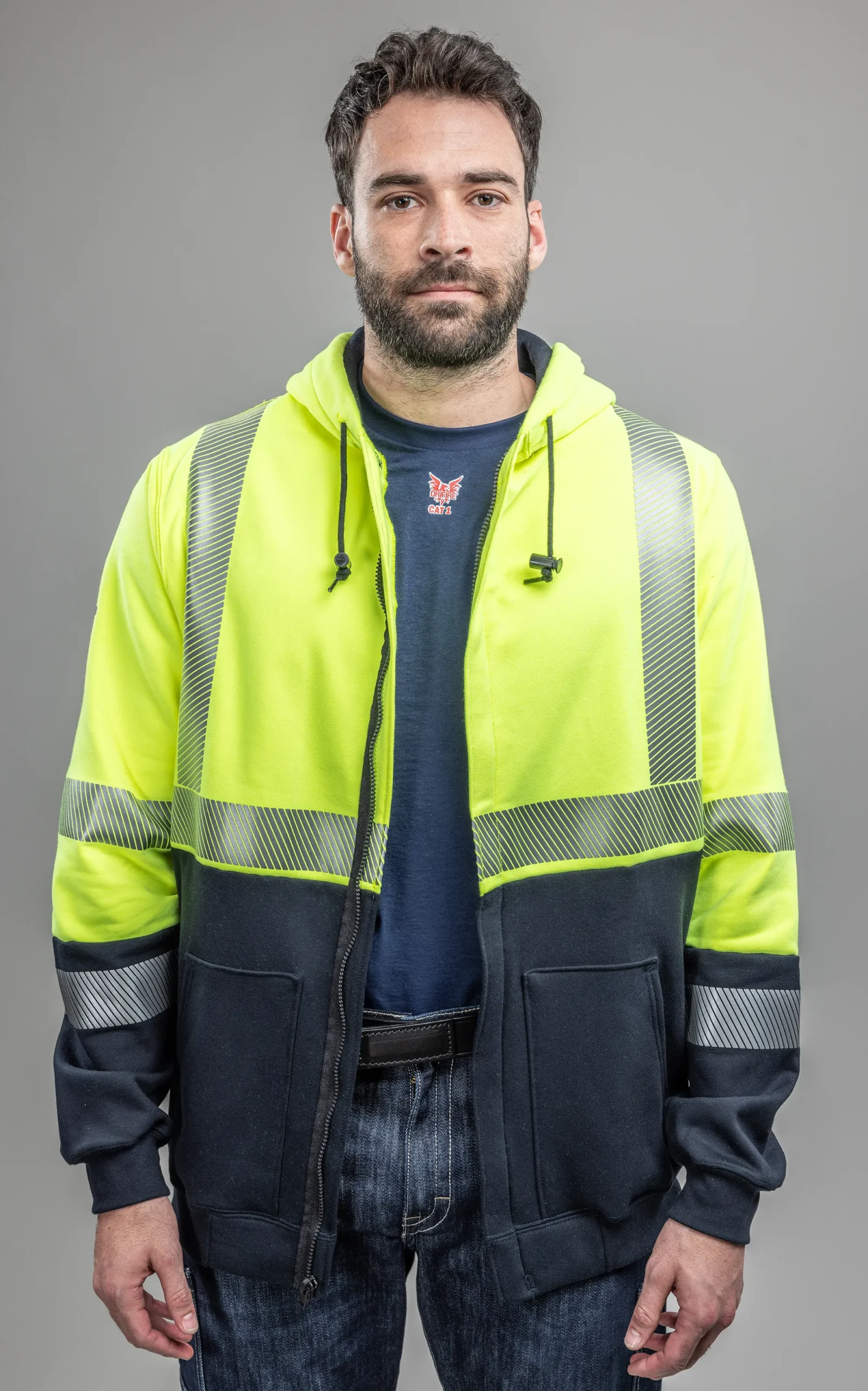 DriFire FR Hi-Vis Hybrid Zip Hoodie Class 3 with DOE Logo SWSHEHZC3-PTX