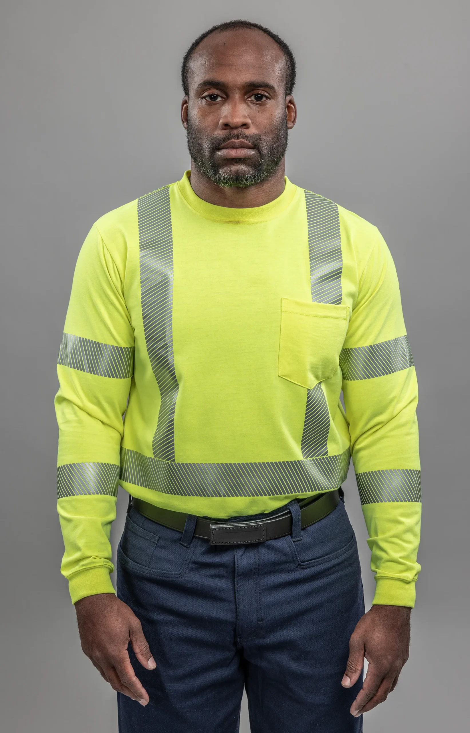 The DRIFIRE® Strongknit ™ FR Hi-Vis long sleeve t-shirt offers lasting comfort with our patented soft, yet durable fabric containing high performance moisture management. Premium comfort features like Pima cotton, fiber and breathable FR reflective trim take your comfort to the next level.